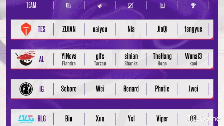 LPL德玛西亚杯,再有2天就正式开赛了,官方在近日,公布了德杯首发大名单,四支世界赛队伍,都没有全主力参赛,滔搏哥369和小奶油缺席,中上由新人顶替,IG新阵容少了Rookie,新人Renard首发,BLG左手没有参赛,剩下四个位置,都是一队选手,AL的情况稍微特殊了一点。